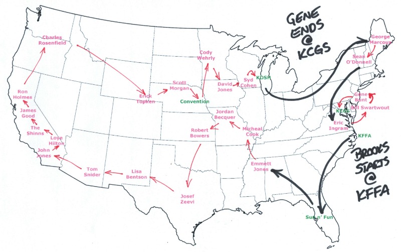 This is the place to discuss Section 4, in which the relay flies from TX to CA.